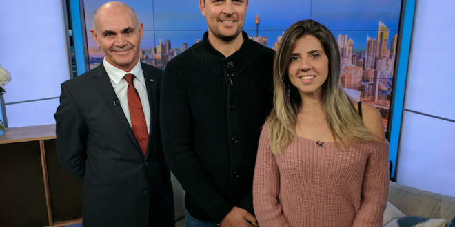 Accompanied by hosts David Koch and Samantha Armytage, Greg Brady, the general manager of Sofitel Sydney Darling Harbour, proudly presented the winning ticket to Shane and his fiancé.
